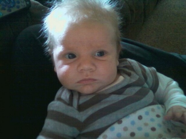 You have discovered your fists! You love bath time! You get so excited when we undress you, you lay in just your diaper and kick kick kick your feet! Your smiling more and more and cooing like crazy! You turn your head when you hear daddy talking. At your 2 month check up you weighed 11 lbs 15 oz and you are 24 1/2 inches long! You are in the 94% for your heighth! Way to go kid!! Chunk it up! You were showing off for the doctor kicking, smiling and talking. You were happy as could be until the shots came and you're poor little heart was broken (so was Mom's) You zonked out pretty much the whole day.WEEK 7